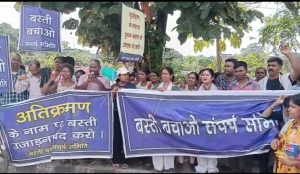 बस्ती बचाओ संघर्ष समिति के बैनर तले बड़ी संख्या में लोग सड़क पर उतरे और विरोध प्रदर्शन किया।